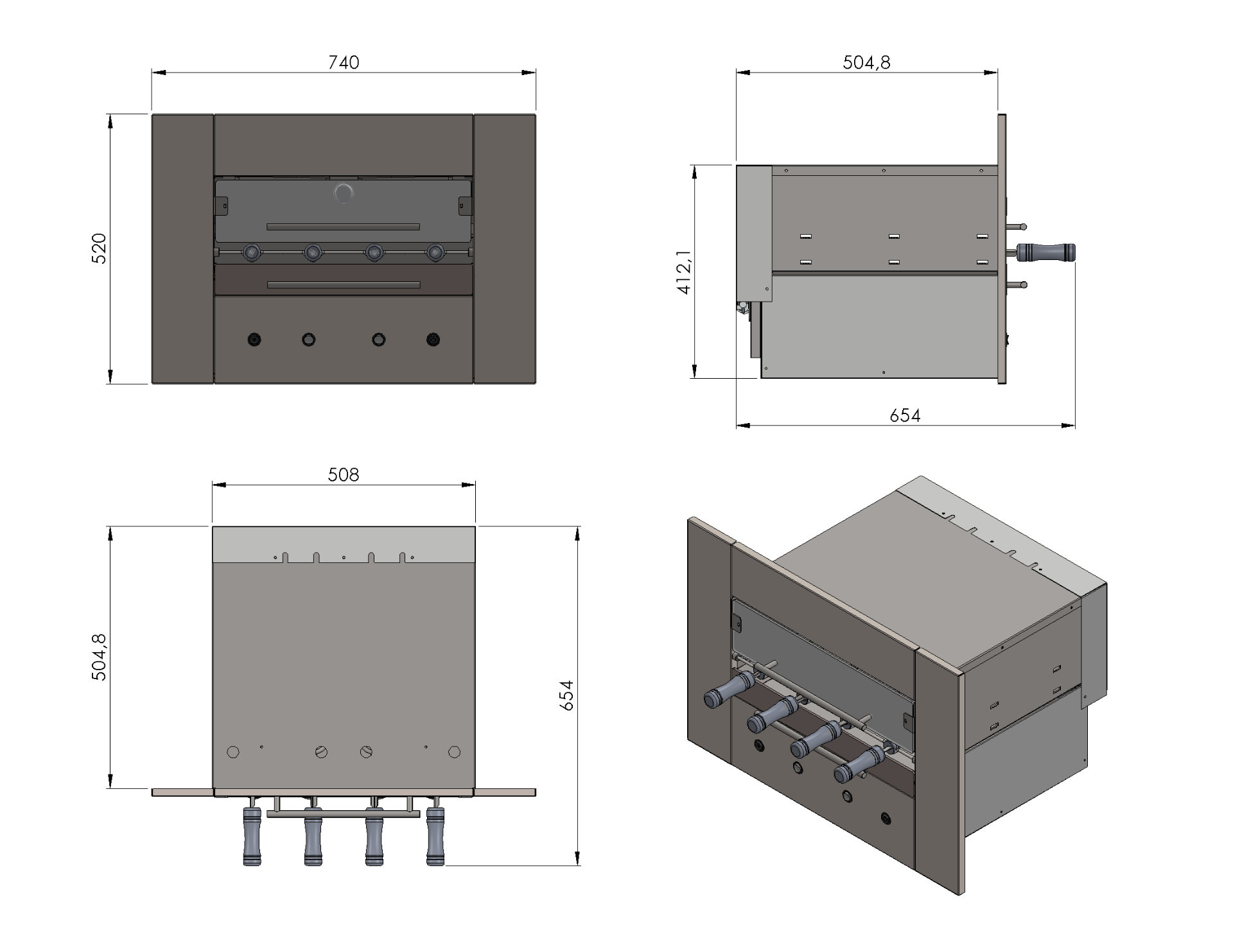 - Painel frontal modular em aço inox 304 escovado